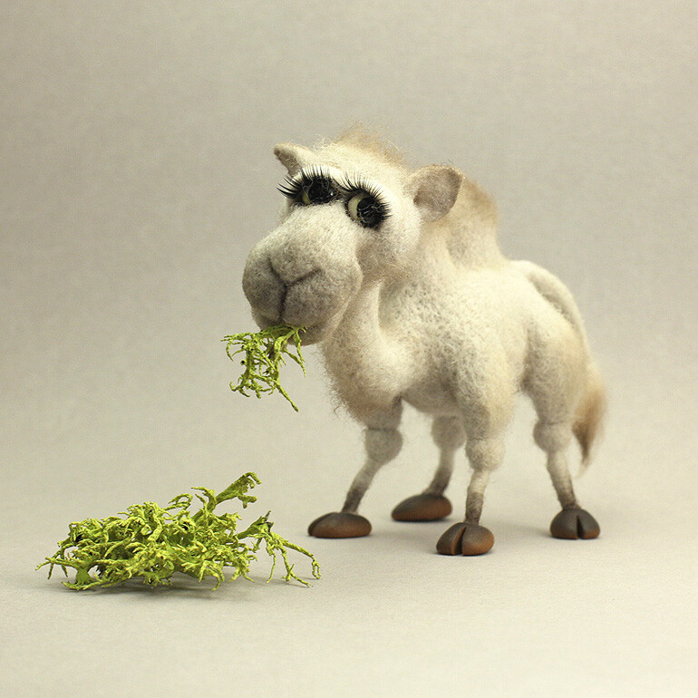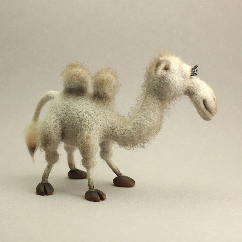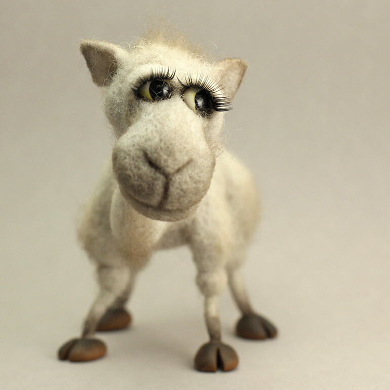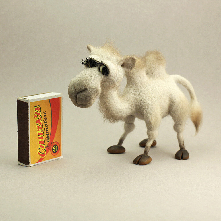 Всеми этими прекрасными качествами обладает маленькая очаровательная Верблюжка. Она всеобщая любимица, мягкая, пушистая красавица. Делать ее из шерсти легко и приятно, справится любой, кто даже не держал в руках иглу. В этой работе нет сложных приемов, но в то же время игрушка скульптурная и выразительная, изящная и эффектная.
