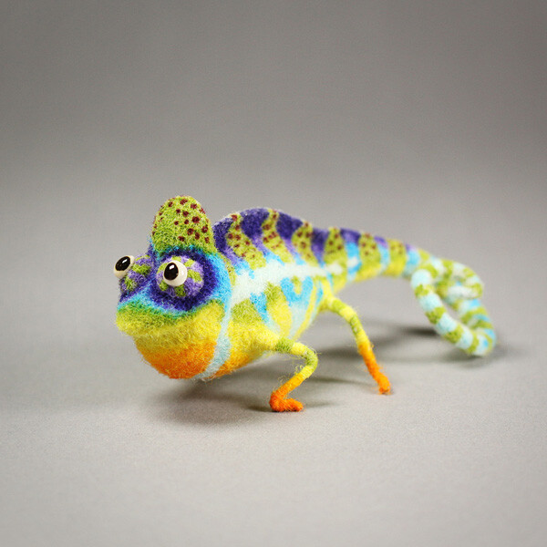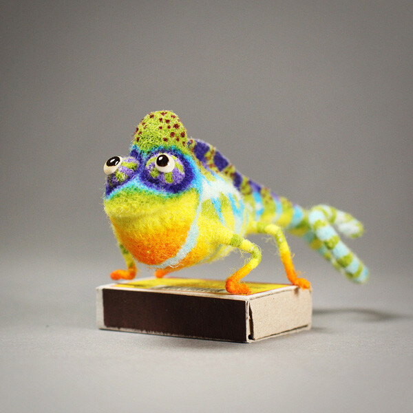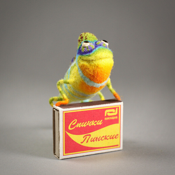 В миниатюре сложно работать не только с формой, но и с цветом, что в валяных игрушках весьма актуально. Но есть волшебная техника, которая даст возможность преодолеть этот размерный барьер. Даже на самых маленьких валяных игрушках вы сможете сделать мелкий яркий рисунок и нежнейшие переходы цвета, контрастные границы и пятнышки, тонкие линии и каемки.