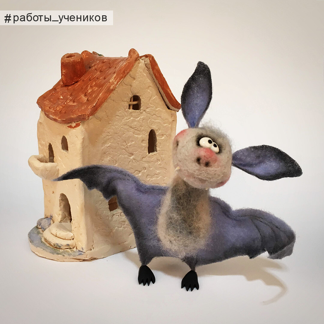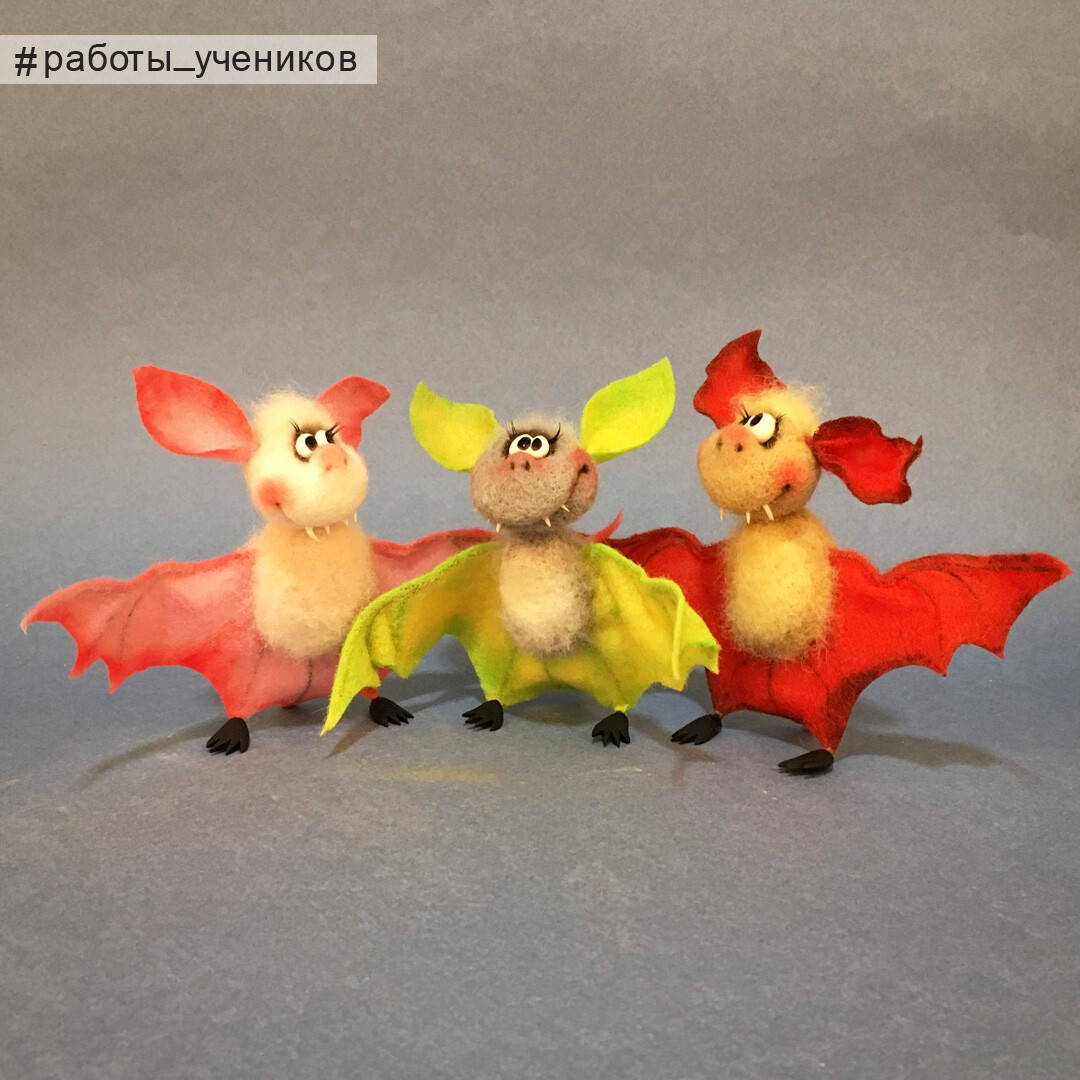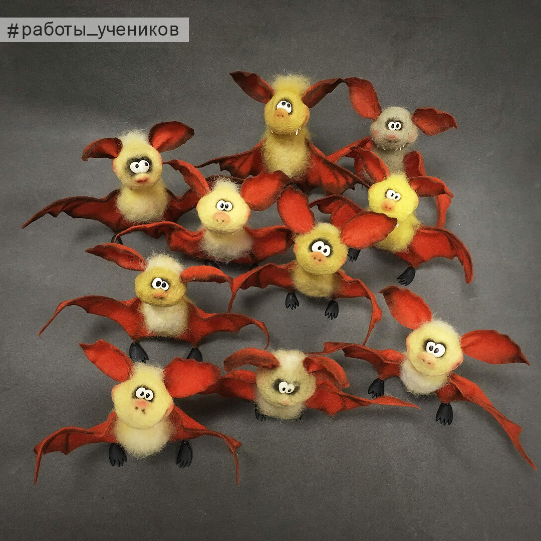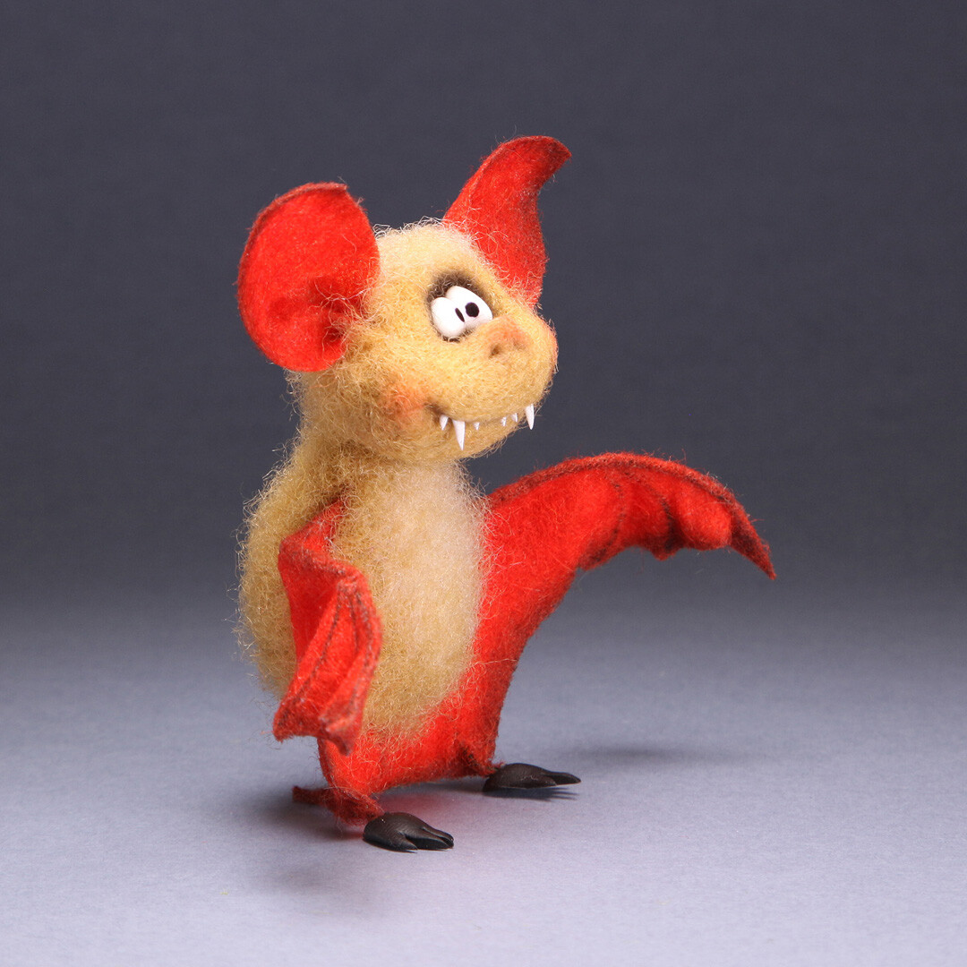 Делать мышку легко, весело и довольно быстро, поэтому "Летучая мышь" подходит и для совсем начинающих, и для продвинутых мастеров валяния.