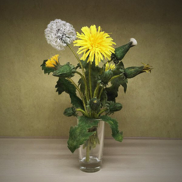 Никакая другая техника обработки шерсти, ни мокрое, ни сухое валяние, не позволят вам сделать такие нежные полупрозраные лепестки и листья с тонкими прожилками. Причем, что тоже важно, относительно быстро.
