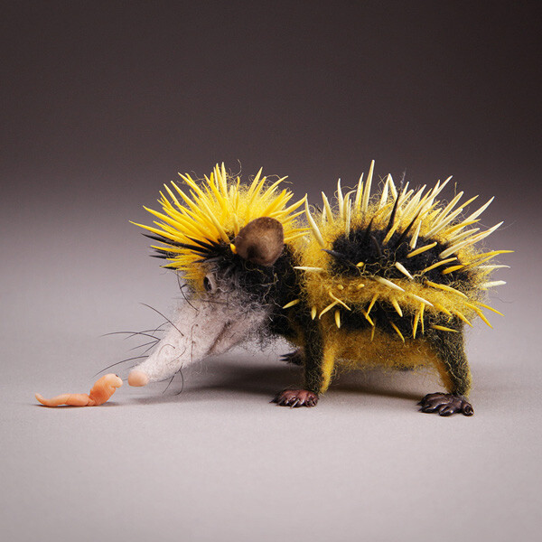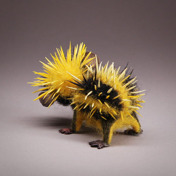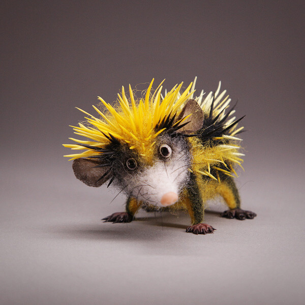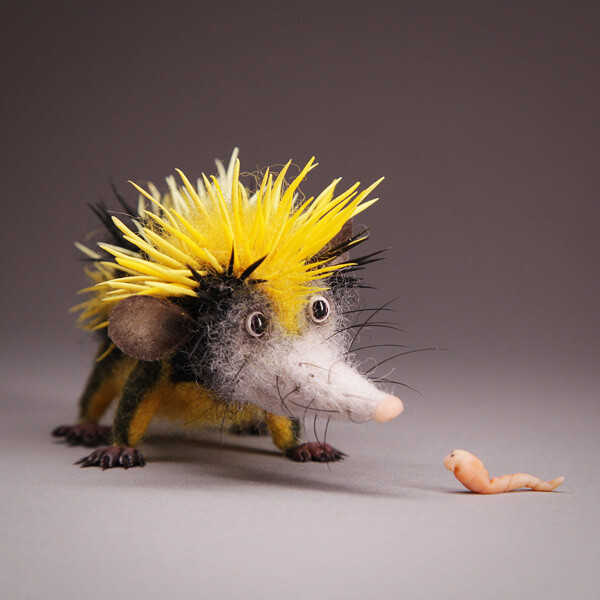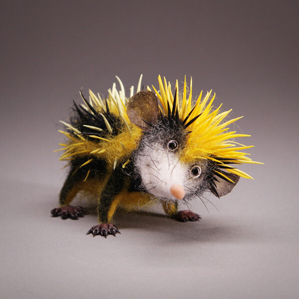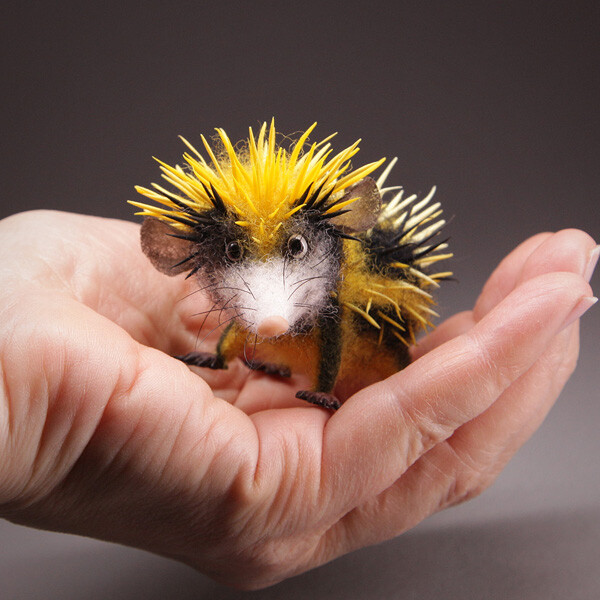 Интересно, что зверек одновременно и пушистый, и колючий. Хочется погладить? Не получится:) Шкурка из контрастных черный и желтых полос как будто предупреждает - осторожно, я не так-то прост!