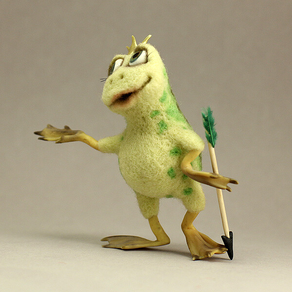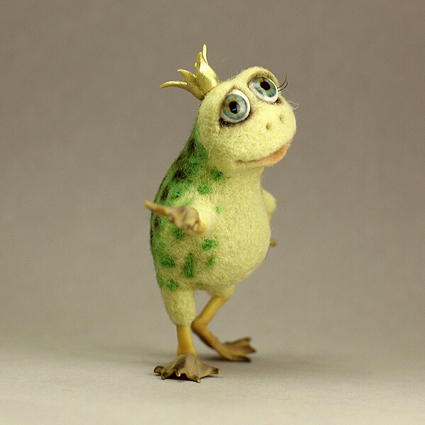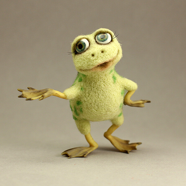 Лягушка - довольно простая игрушка, на примере которой вы получите исчерпывающую информацию обо всех нюансах скульптурного валяния шерстяной миниатюры: